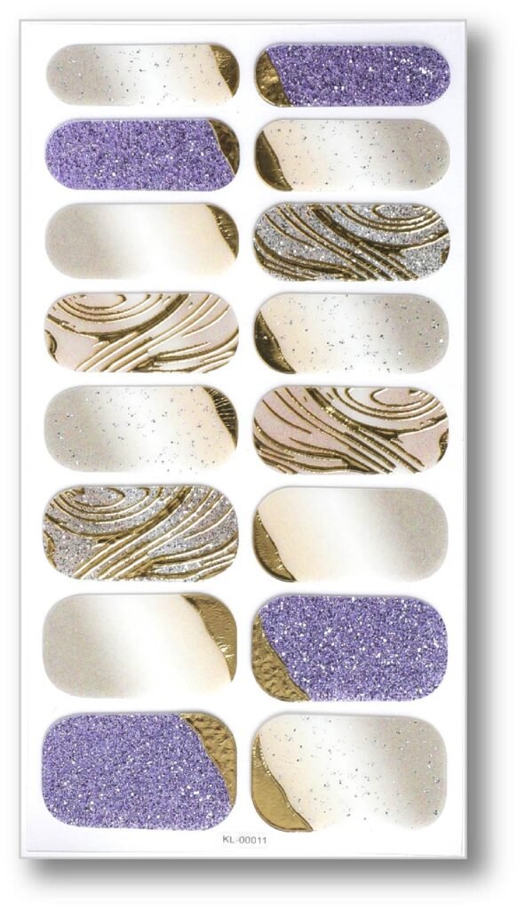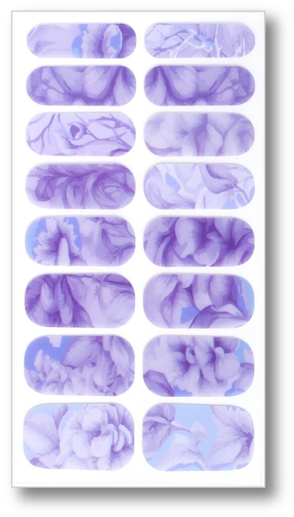 • Graphic Design: The nail stickers show off delicate purple flowers and gold line decorations to add a touch of sparkle to the ensemble. The purple flower design is full of natural romance, while the gold details enhance the overall sophistication and make the nails shine even more.