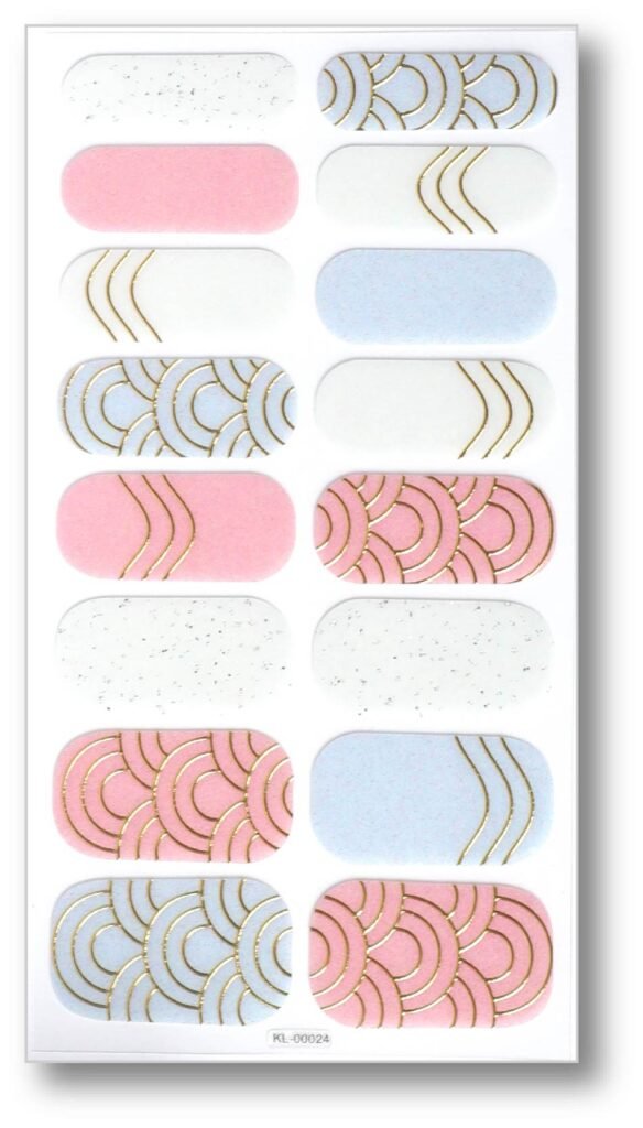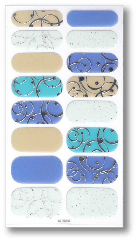 • Pattern design: The nail stickers show simple lines and geometric patterns, giving each nail a unique design. Among them, the white lines on the blue-green background add a little playfulness and sophistication.