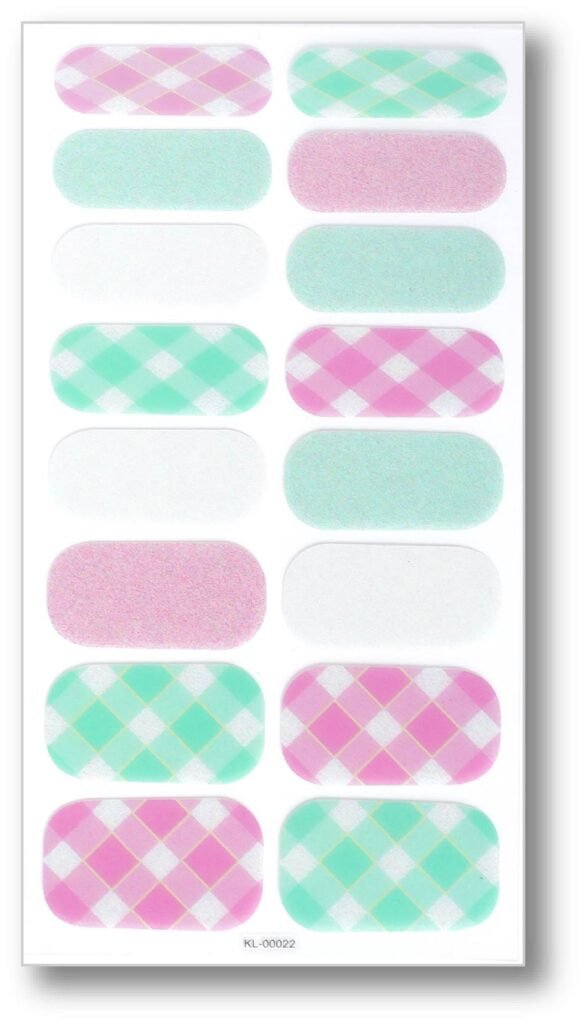 • Pattern Design: The nail sticker showcases a delicate diamond-shaped patchwork pattern, with a striking contrast between pink and green, adding interest and vibrancy to the ensemble.
