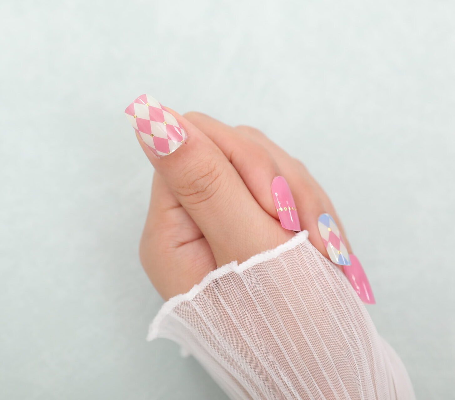 • Pattern Design: The nail sticker showcases a unique diamond-shaped patchwork pattern, and this geometric design brings a modern and artistic touch.