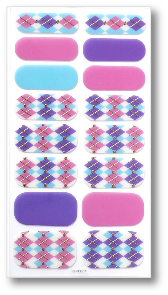 • Pattern design: The nail art sticker showcases a unique diamond patchwork pattern, and the diamond pattern on each nail uses a different color combination to add layers and fun to the design. This geometric design brings a modern and artistic feel.