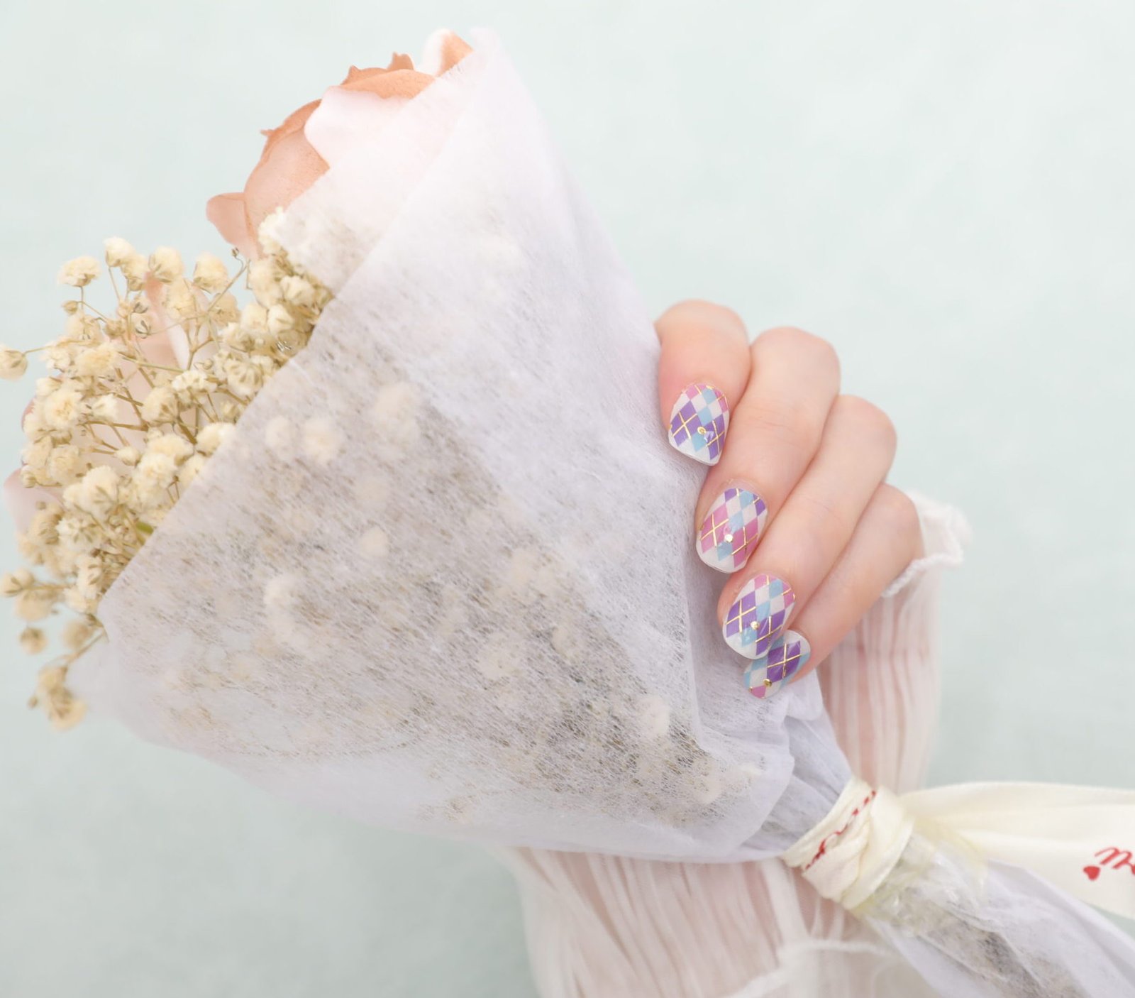 • Pattern design: The nail art sticker showcases a unique diamond patchwork pattern, and the diamond pattern on each nail uses a different color combination to add layers and fun to the design. This geometric design brings a modern and artistic feel.