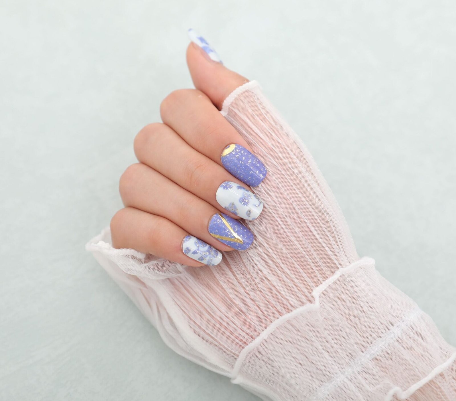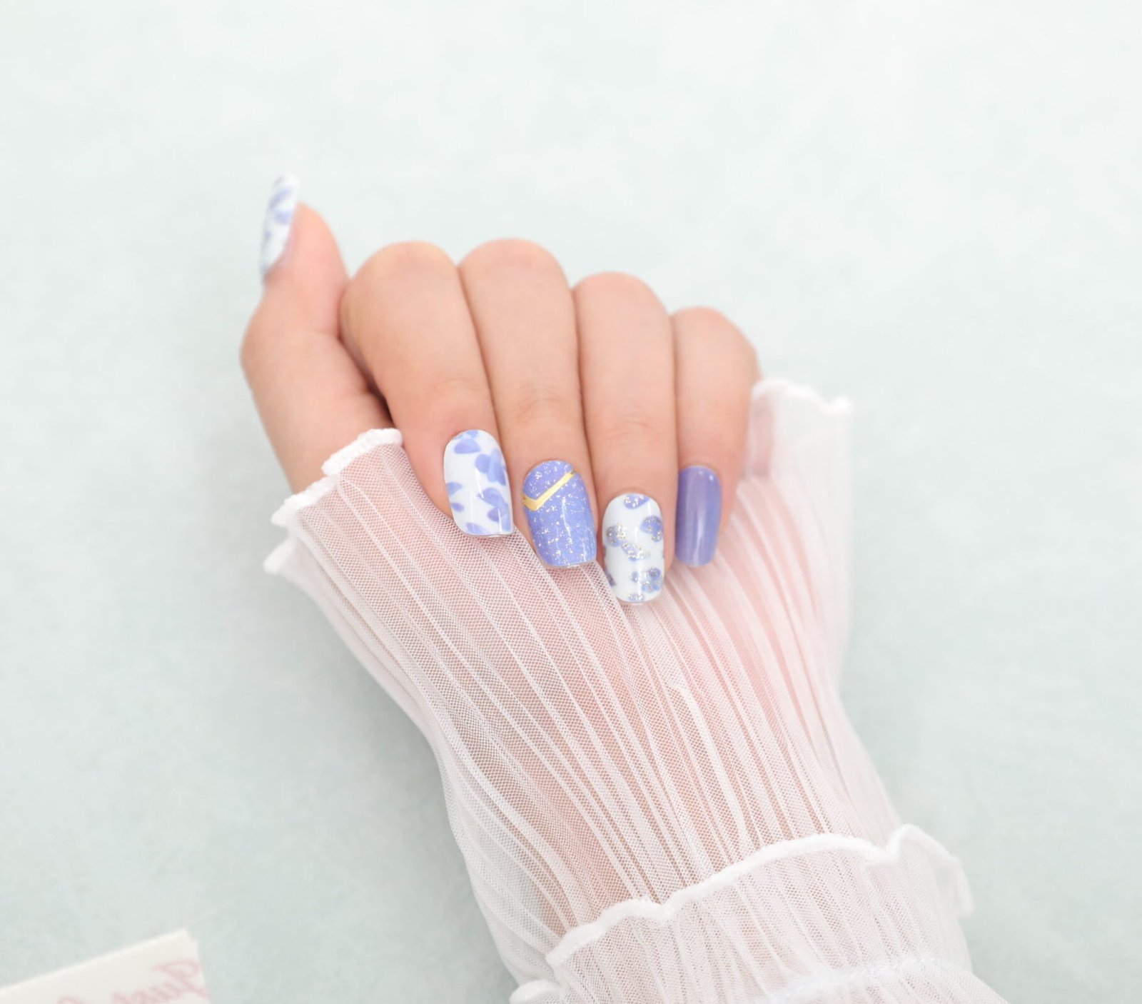 • Graphic Design: The nail stickers show off delicate purple flowers and gold line decorations to add a touch of sparkle to the ensemble. The purple flower design is full of natural romance, while the gold details enhance the overall sophistication and make the nails shine even more.