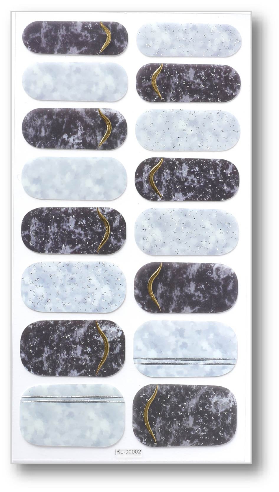 包裝內容 : 1張 - 16指甲貼 / 2張 - 濕紙巾 / 1 塊 - 指甲銼